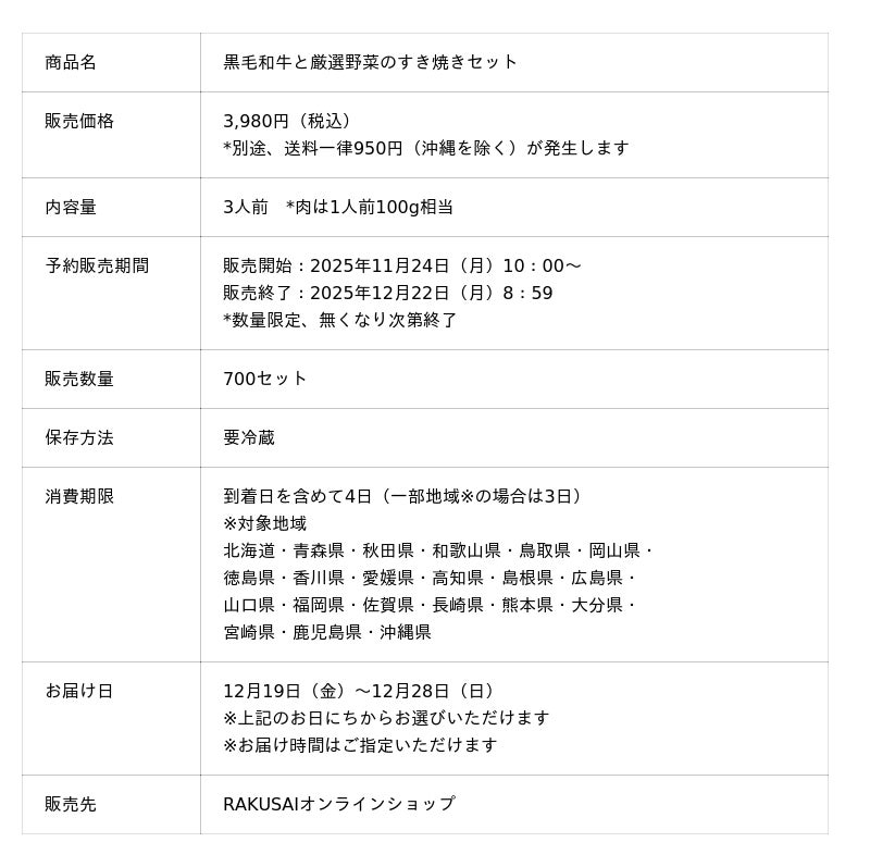 『黒毛和牛と厳選野菜』のすき焼きセット11月24日(月)予約販売スタート