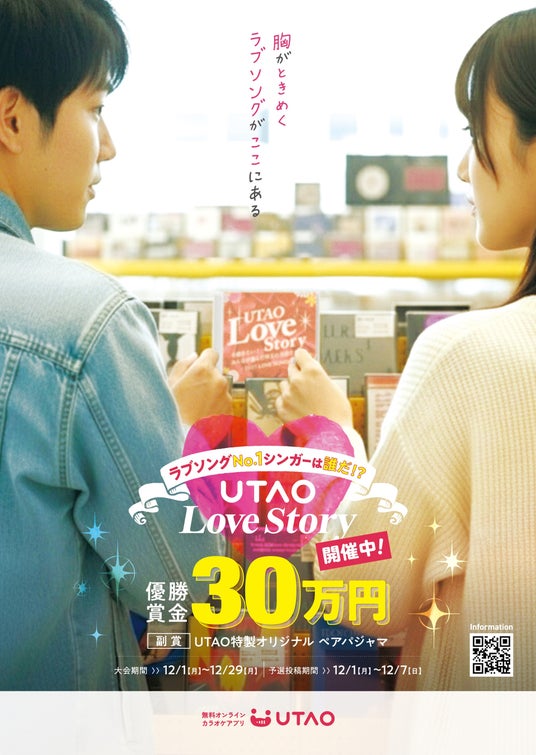 全国で201店舗を展開し、西日本においてカラオケ業界最大規模を誇るジャンカラが監修するオンラインカラオケアプリ「UTAO」にて、恋をテーマにした歌のコンテスト『UTAO Love Story(ウタオ ラブ ストーリー)』を開催いたします。