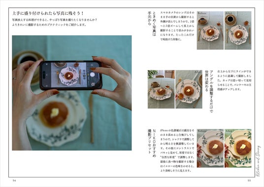 また、きれいにアレンジできたら、写真に撮って残したくなるもの。書籍の中では、NIKOさん流の撮影テクニックをご紹介しています。3つのポイントだけで、スマホでも簡単にきれいで美味しそうな写真に!