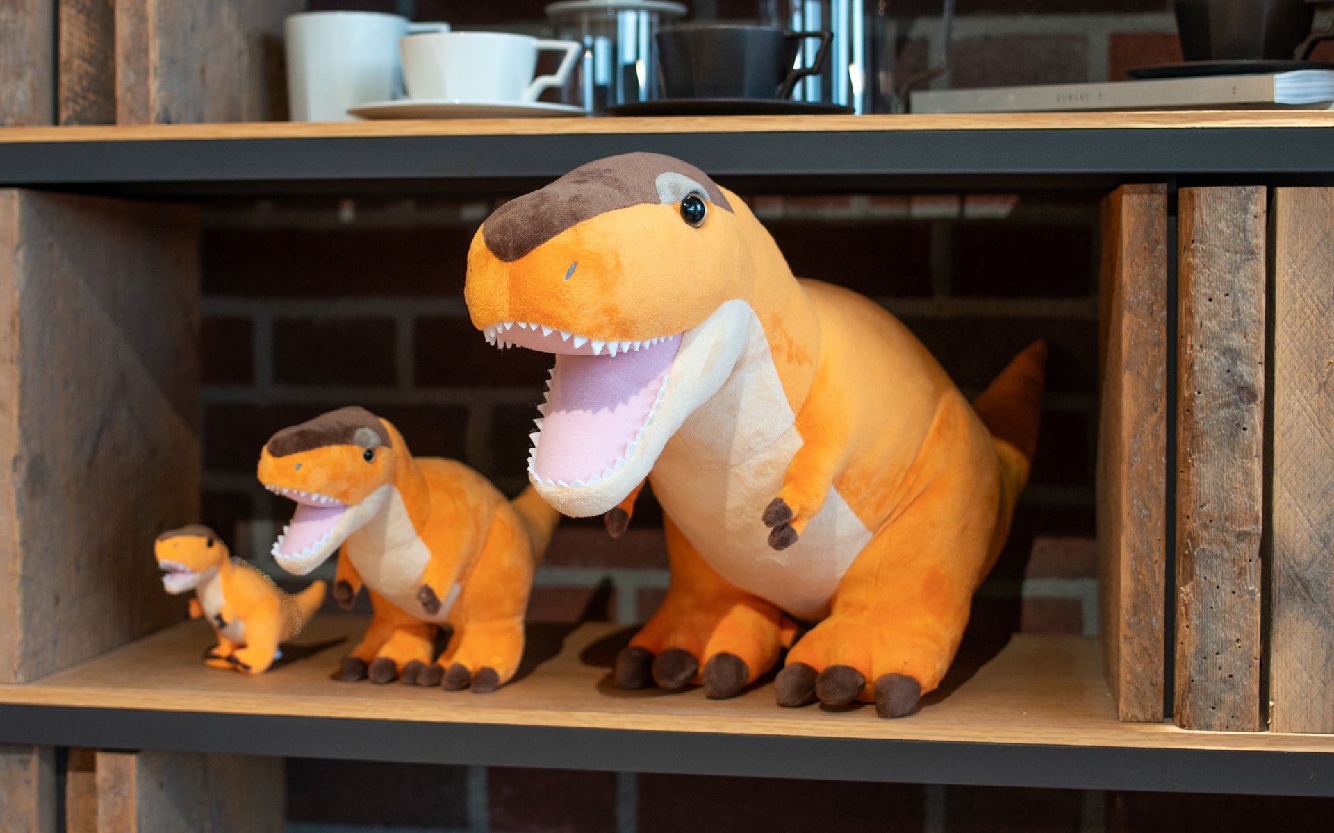 レギュラーサイズのティラノサウルス スタッフドモデルをスケールアップし、各部をディテールアップしました。ふわふわの手触りで、思わずぎゅっと抱きしめたくなる存在感抜群のぬいぐるみです。