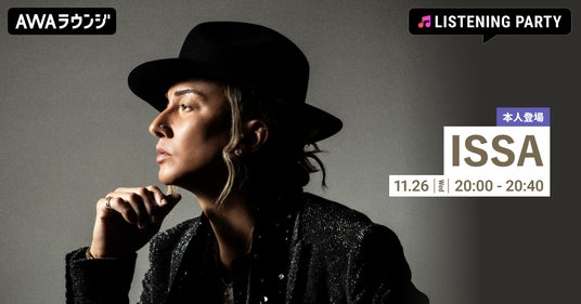 AWA株式会社(本社:東京都港区、代表取締役CEO:冨樫晃己)が運営する、サブスクリプション型(定額制)音楽ストリーミングサービス「AWA(アワ)」は、2025年11月26日(水) 20:00~20:40の40分間に渡り、無料で誰でも参加できるオンライン空間「AWAラウンジ」で、ISSAが音声配信で参加するリスニングパーティーを開催いたします。
