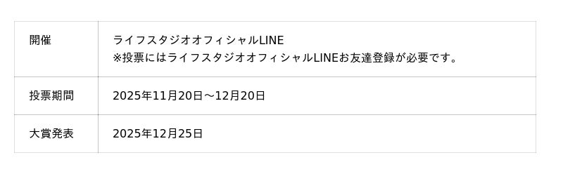 PHOTOFES 2025年VOL.3~あなたの一票がライフスタジオの顔になる~を開催。officialLINEお友達登録、投票でライフスタジオクーポンゲット!
