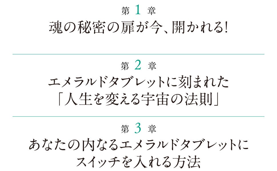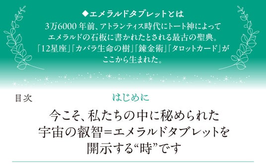 エメラルドタブレットとは、エメラルドの石板に宇宙の真理、宇宙のしくみが記されたという知る人ぞ知る伝説の文書です。世界最古の聖典エメラルドタブレットに記された宇宙の真理と人生のからくり――そのすべてが今、解き明かされる!
