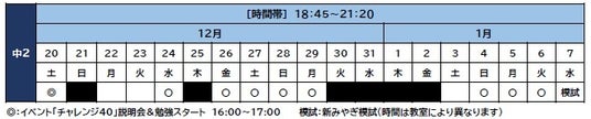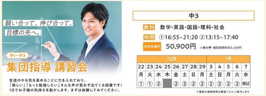 株式会社 学研ホールディングス(東京・品川/代表取締役社長:宮原博昭)のグループ会社、株式会社学研スタディエ(埼玉・さいたま市/代表取締役社長:亀谷眞宏)が展開する、宮城県の総合進学塾 あすなろ学院は、2025年12月20日(土)~2026年1月7日(水)で、中学生対象の「冬期講習会」を開講いたします。