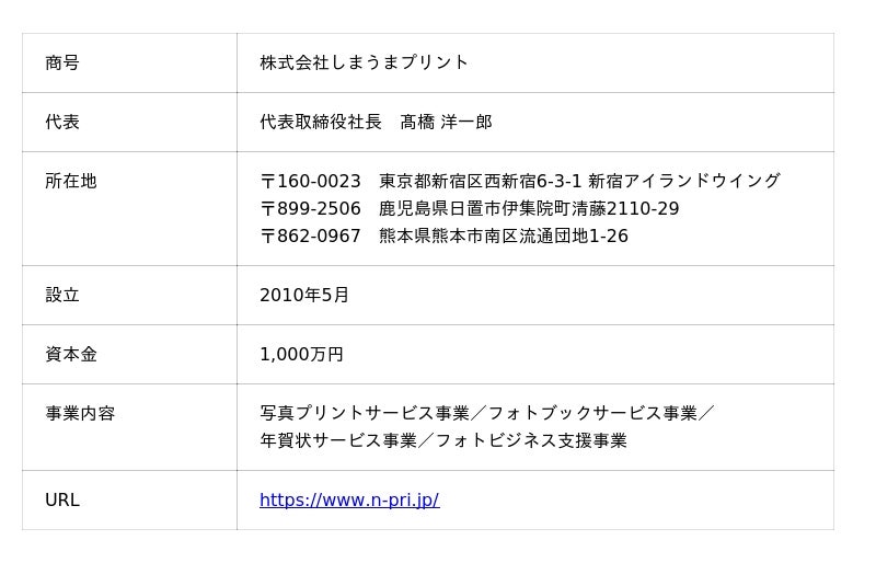 しまうまプリントは「すべての想いを身近に 時をつなぐ会社になる」というミッションのもと、ネットプリント専業で「しまうまプリント( https://www.n-pri.jp/ )」サービスを運営している企業です。