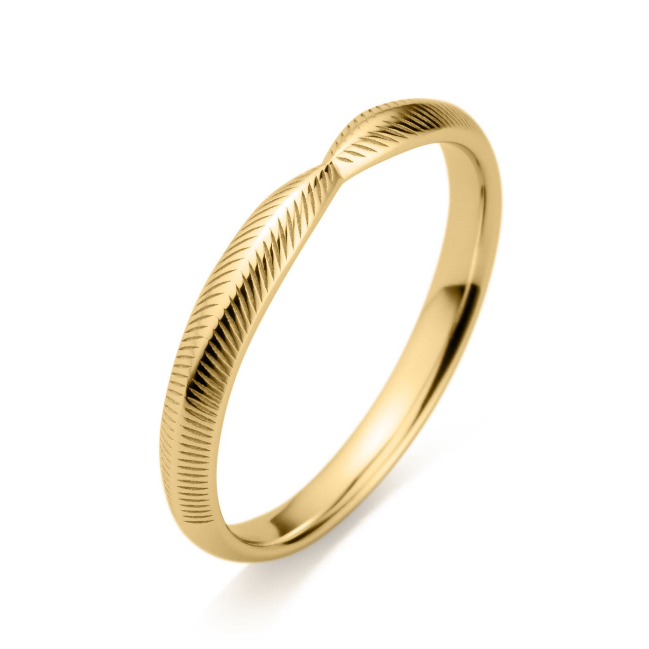 葉脈を思わせるテクスチャーは、あたたかみがありながら端正な印象となるように、職人と長い時間をかけて生み出した独自のもの。上品で繊細な輝きで、お二人の指を彩ります。「シンプルな中にも個性を感じさせたい」そんな方にもおすすめです。