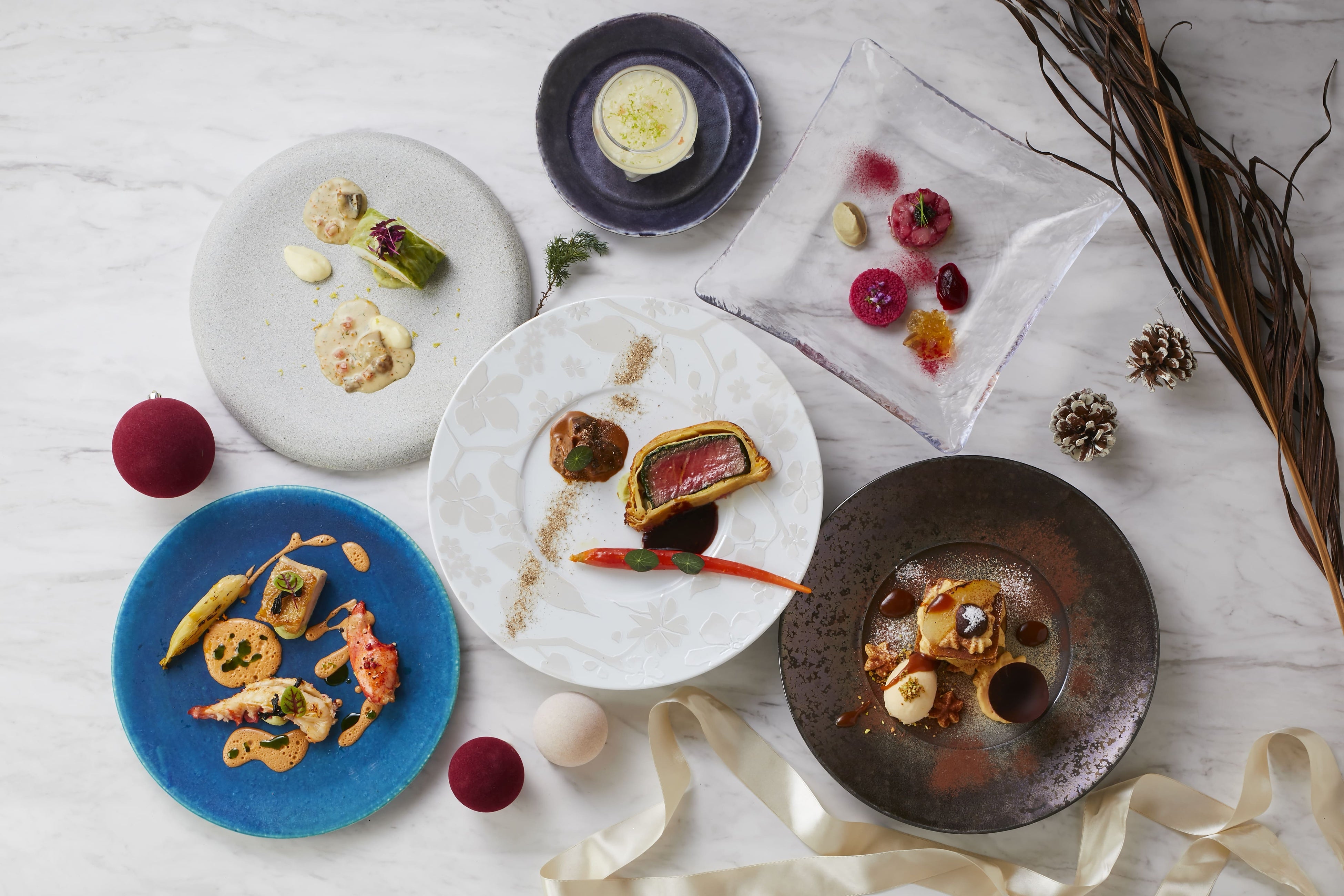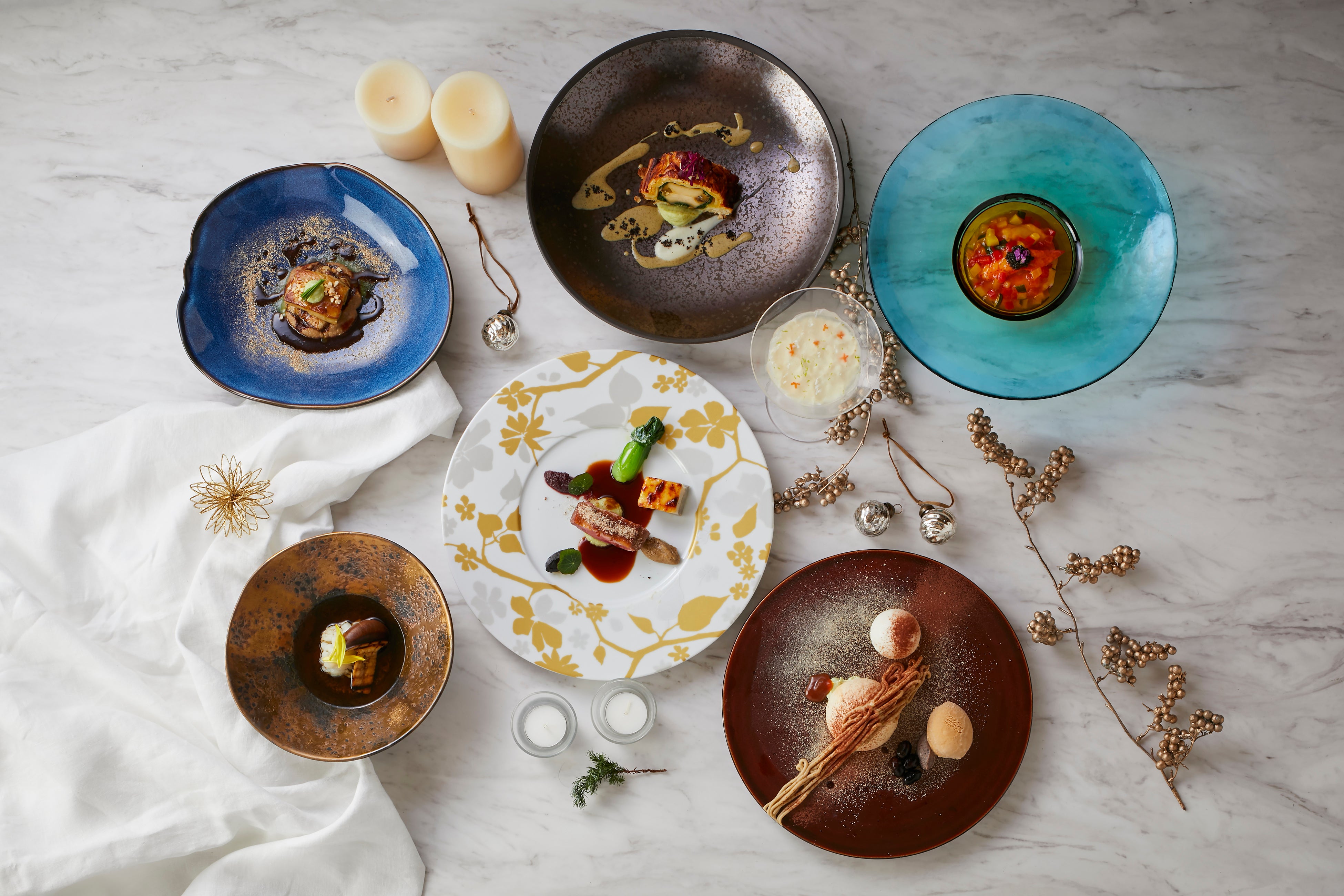 本コースでは、冬の京都の食材をふんだんに使用した特別メニューをお楽しみいただけます。ランチコースのメイン料理には、牛フィレ肉のクレープパイ包みをご用意。じゅわっと広がる牛フィレの旨味と、クリーミーなソースに、京都の伝統野菜「堀川ごぼう」を使用した自家製ごぼうパウダーを合わせ、一口ごとに香りや味わいの変化をお楽しみいただけます。ディナーコースでは、前菜にオマール海老やフォアグラを贅沢に使用。魚料理は、黒鮑をズワイ蟹のクリームとともに丁寧に仕上げ、濃厚な旨味と滑らかな口当たりをお楽しみいただけます。肉料理には、カシスを食べて育った京鴨を使用し、カシスのピューレと合わせた、深い味わいをご堪能ください。ランチ・ディナーともに、前菜からデザートまで季節感あふれる一皿一皿をお届けいたします。