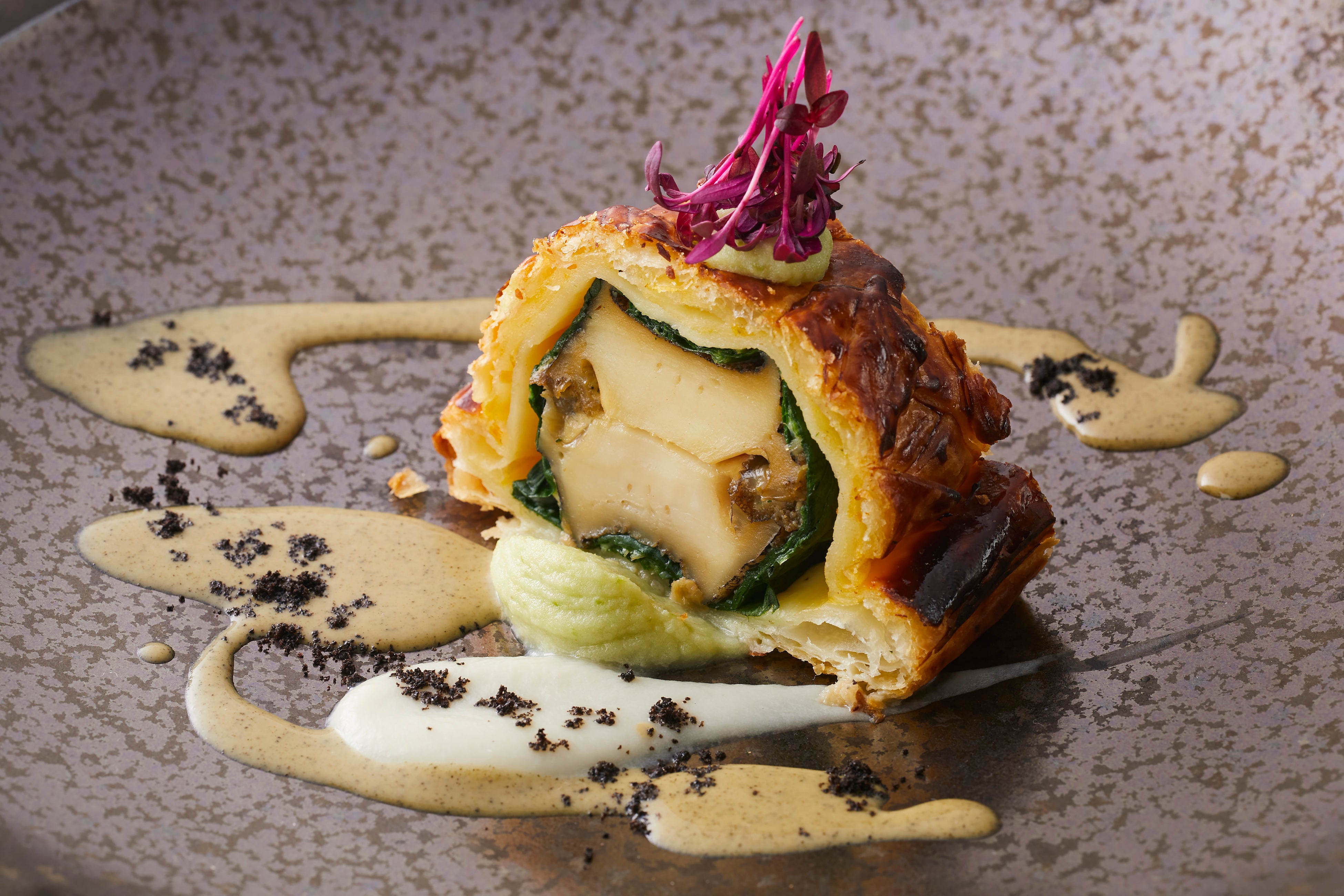 黒鮑を贅沢に使用した「黒鮑とズワイ蟹入りムースのパイ包み」