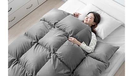 6つ星のCILブラックラベルが定める厳格な品質基準をクリアしており、表面には美しい光沢をもつ「超長綿60サテン」を採用し、高級感あふれる仕上がりとなっている。さらに、2層キルト加工を施すことによって羽毛の偏りを防ぎ、身体を優しく包み込むような暖かさを感じられる。