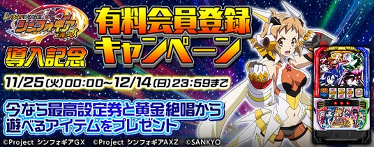 上記期間中、有料会員登録しログインされた方を対象に「最高設定券」と「黄金絶唱」から遊べるゲーム内アイテムが貰える期間限定のキャンペーンを実施します!詳しくは公式サイト及びゲーム内のお知らせをご覧ください。