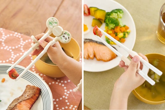 リングに指を入れるだけで使えて、子どもがすぐに食事を楽しめるお箸です。「できた」という成功体験を積み重ね、自分から“食べる”気持ちを育みます。シリコン製パーツの取り外しで、一般のお箸に近い状態へステップアップも可能です。