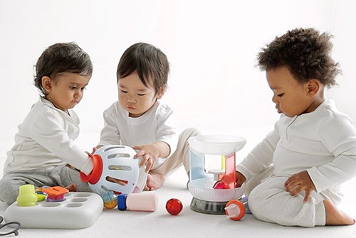 1歳の好奇心を観察し設計された、遊びが連鎖していく成長のためのおもちゃ。試行錯誤を促す絶妙な達成感が、次のステップへの意欲を生み出します。好奇心をくすぐる質感やデザインが、子どもの探索行動や見立て遊びを引き出します。