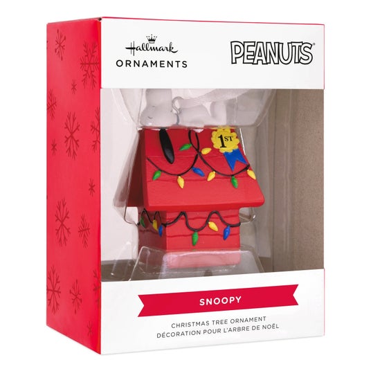 『スヌーピーのメリークリスマス』から、コンテストの賞金を狙って犬小屋をデコレーションするスヌーピーのユニークなシーンがオーナメントに! 絵本風のスペシャルなパッケージはギフトにも最適です。