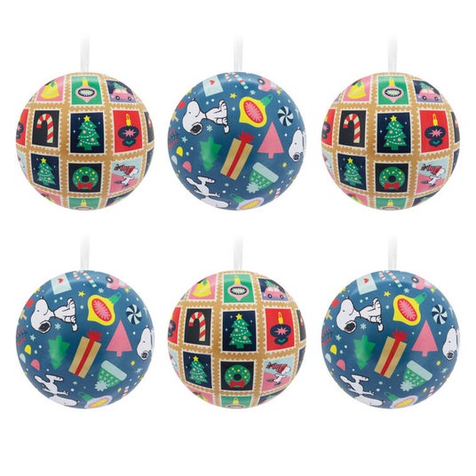 サンタクロースに扮したり、スケートを楽しんだり――ホリデーシーズンを満喫するスヌーピーとウッドストックが描かれたボールオーナメントセット。ツリーに飾るだけで、ホリデー気分がぐっと盛り上がります。12個のブリキ製ボールオーナメントは両面デザインで、一方にはキャラクターたち、もう一方にはクリスマスをイメージした華やかなパターン入り。6種類のデザインが各2個ずつ入った、ギフトにもぴったりの特別なアイテムです。