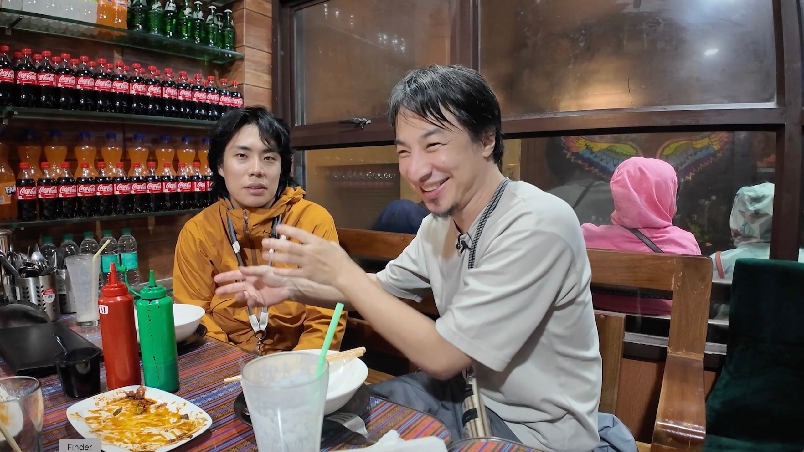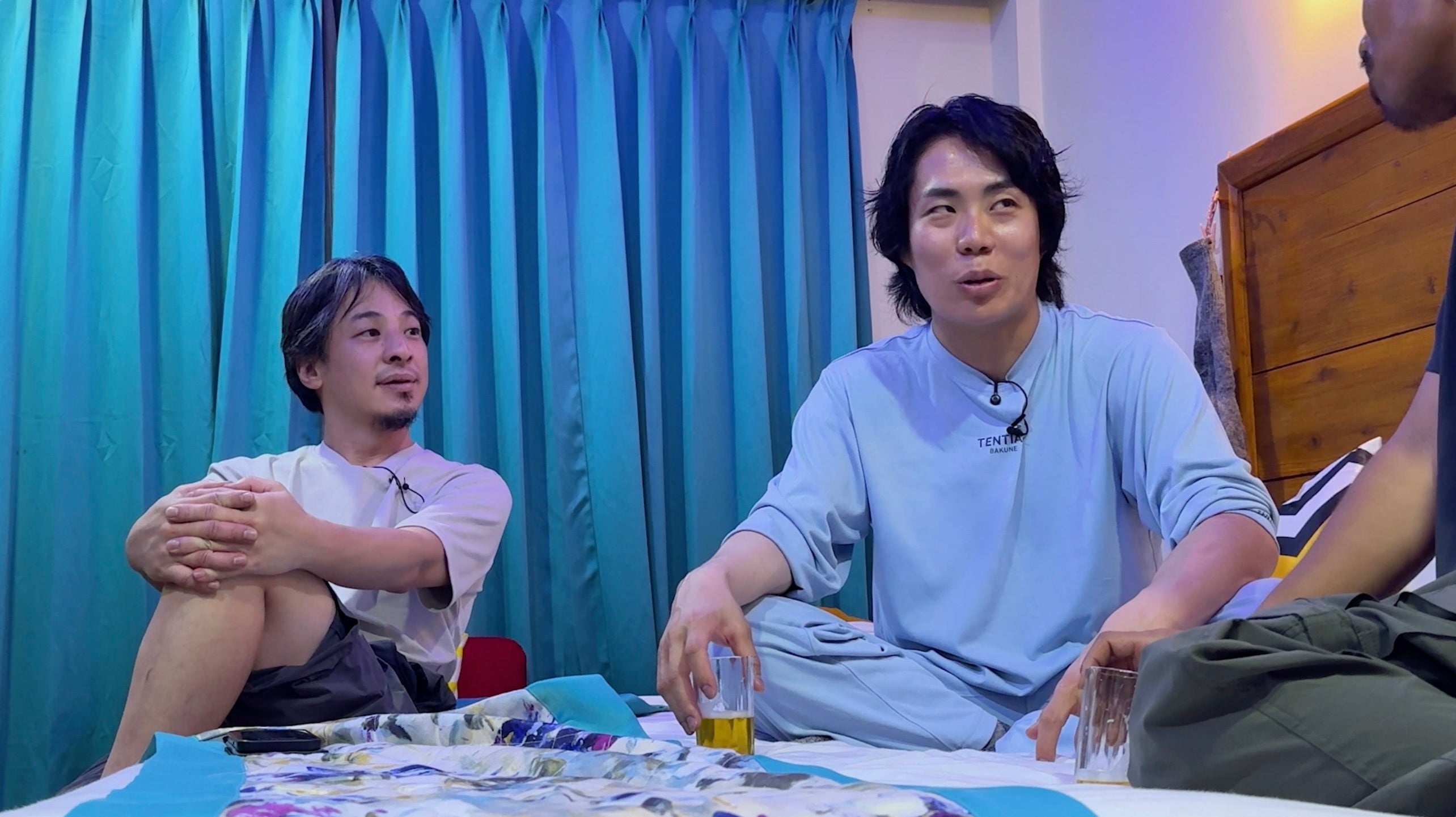 夕食をとったチベット料理店では、くるまが「ひろゆきさんは旅行マスター、英語が喋れる人。東出さんはサバイバル能力があって男前で。次に俺って言われた時にあまりにも雑魚すぎておもろいかもと思った」「何も持ち合わせてないやつって結構おもろいんじゃないかと思って」と、番組出演を決めた思いを打ち明けます。そこでひろゆきが「今のところおもろくできてますか?」と切り込むと、くるまは「おもろくなってないんですよ」「もっと大パニックになりたかった。“ここにも行けなかった”とか“電気がつかない”とかやりたかったんですけど、バングラデシュがいい人すぎて…」と回答。そこで、旅に同行する大前プジョルジョ健太ディレクターが「毎晩スタッフで反省会をしていて…」と明かすと、ひろゆきは「反省会に呼びつけて一緒にやった方がいいんじゃない?」「今日、反省会やるの見たい」と提案しました。