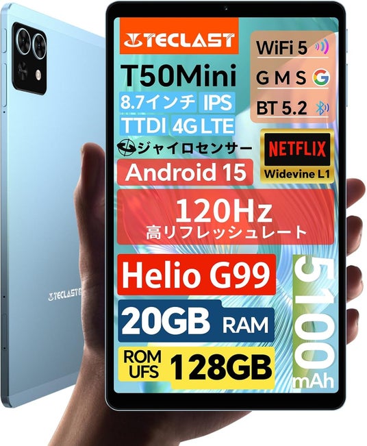 T50Mini Android15タブレットに、8.2mm/368gとの驚くほど薄くて軽量で、ポータブルなオールメタルデザイン、お出掛け時にも負担にならず手軽に持ち運びできます。家中またはどこへでも持ち歩けるモバイルなAndroid15タブレットです。