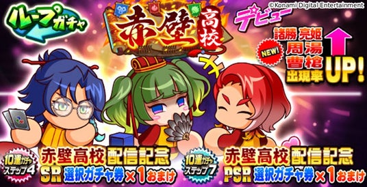 新シナリオの配信を記念して、「曹槍(そうそう)」・ 「諸勝 亮姫(しょかつ りょうき)」 ・「周湯(しゅうゆ)」が新たに出現する「ループガチャ 赤壁高校デビュー」を開催。