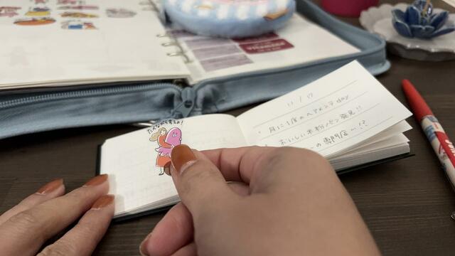 スマホで日記をつけるのも便利ですが、アナログの良さってやっぱりあるなと実感しています。シールを貼ったページをめくる時間、インクの色や文字の大きさのバラつき、その日の気分がそのまま残っている感じ。