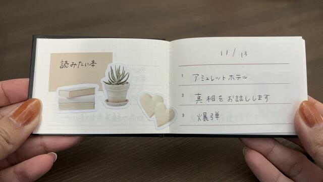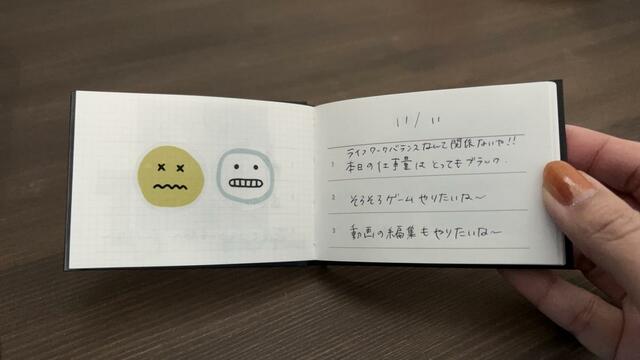 ちなみに、見開き1ページを丸々1日分として使えるので、右ページにその日の3つを書き、左ページにはシールを貼って気分を整えるのが筆者の定番スタイルです。