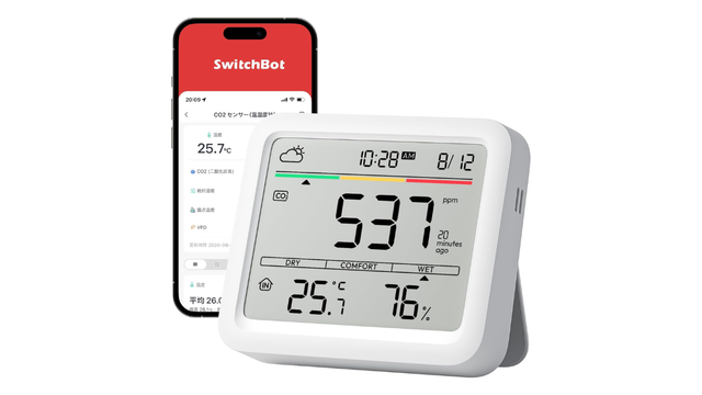 SwitchBotのCO2センサーが20%オフで7,000円切りに! 部屋の空気管理も自動化してスマートに!