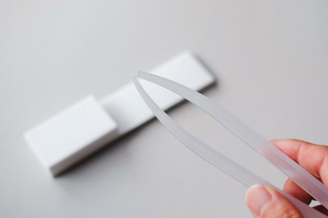 先端の隙間はフェイスマスク1枚分の厚みになっていて、トングを大きく動かさなくてもサッと掴めるようになっています。