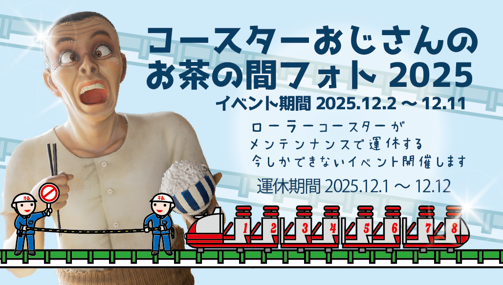2025年12月1日(月)~12月12日(金)の期間、ローラーコースターはメンテナンスのため運休となります。