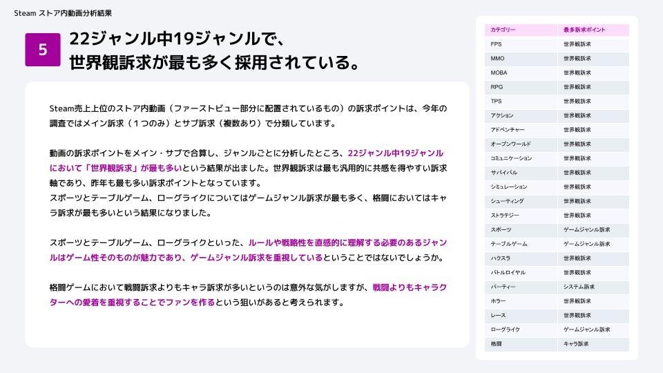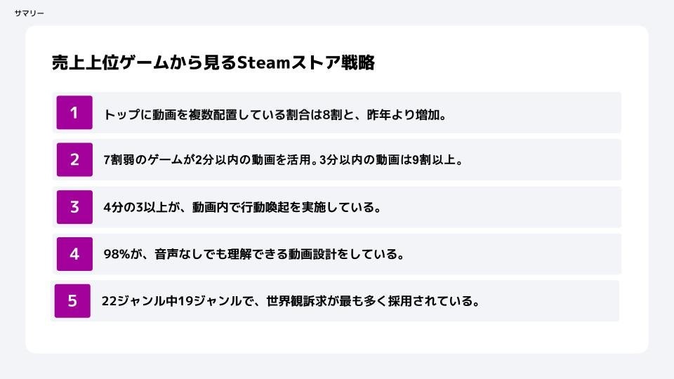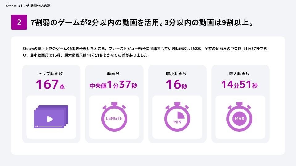 本リリースでは、Steamストア動画分析調査内容の一部を公開いたします。