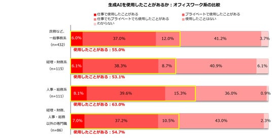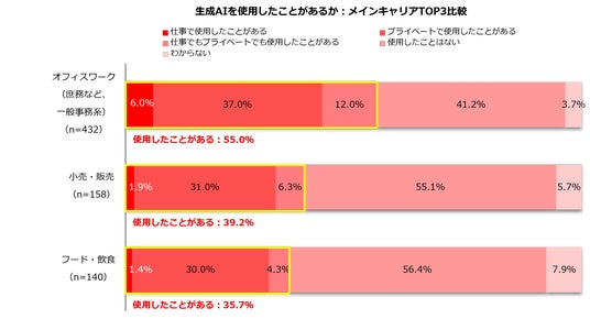 4.生成AIを使用したことがあるか:メインキャリアTOP3/オフィスワーク系比較