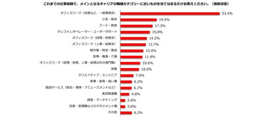 3.メインキャリアの職種「オフィスワーク(庶務など、一般事務系)」53.4%