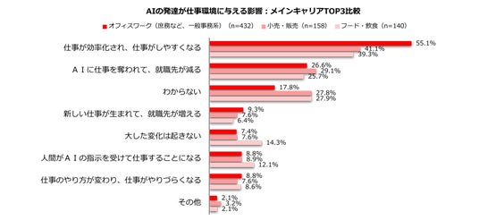7.AIの発達が仕事環境に与える影響:メインキャリアTOP3/オフィスワーク系比較