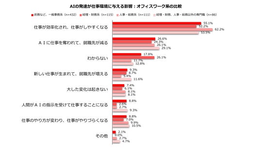 人事・総務系は6割超え/AIの影響「仕事がしやすくなる」51.7%、「就職先が減る」25.0% ~しゅふJOB総研調査~