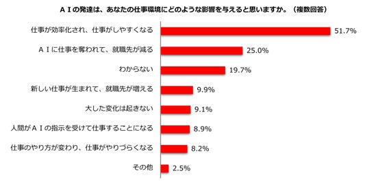5.AIの発達が仕事環境に与える影響「効率化され、仕事がしやすくなる」51.7%