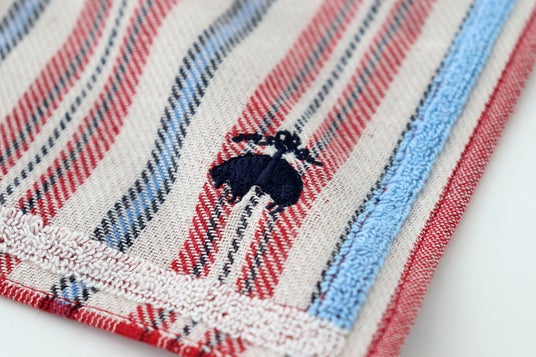 チェック柄とストライプ柄のガーゼに、2色のパイルを組み合わせた4面デザインで、折り方によって表情を変えられる贅沢なつくりです。吸水性にも優れ、実用性とデザイン性を兼ね備えた逸品。