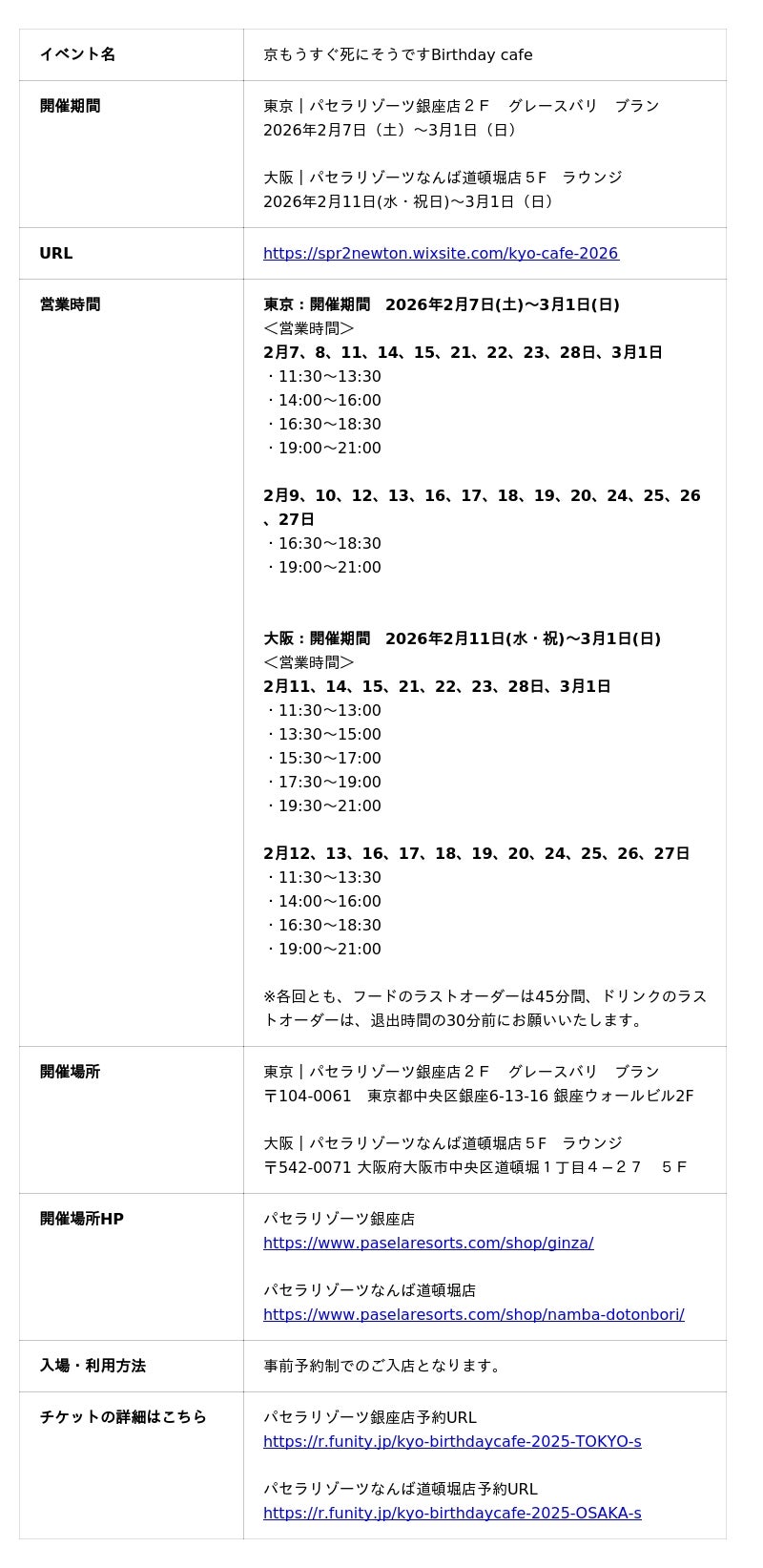 Birthday cafe』を2026年2月7日(土)(銀座店)~、2026年2月11日(水・祝日)(大阪店)~2026年3月1日(日)の期間限定で開催致します。