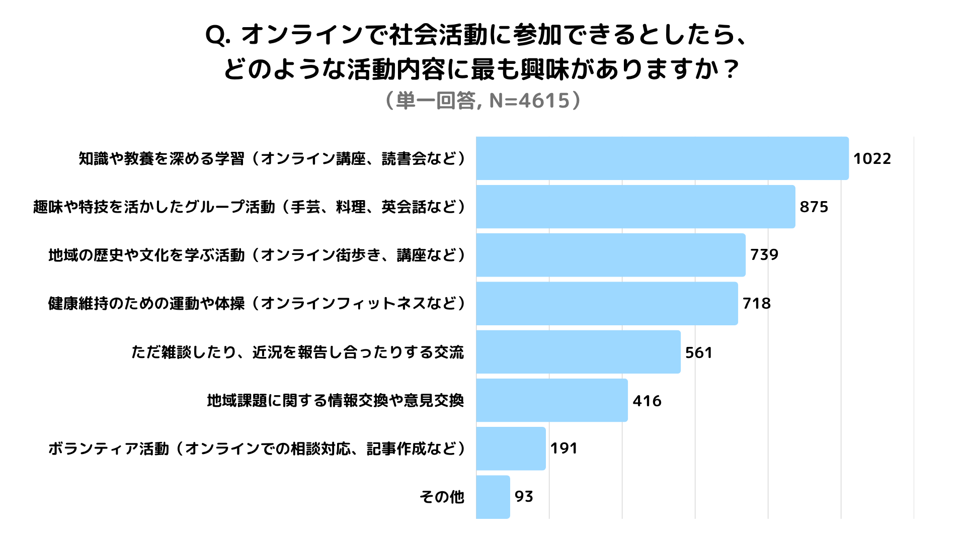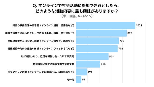 ▼オンラインで興味がある活動内容(単一回答, N=4,615)