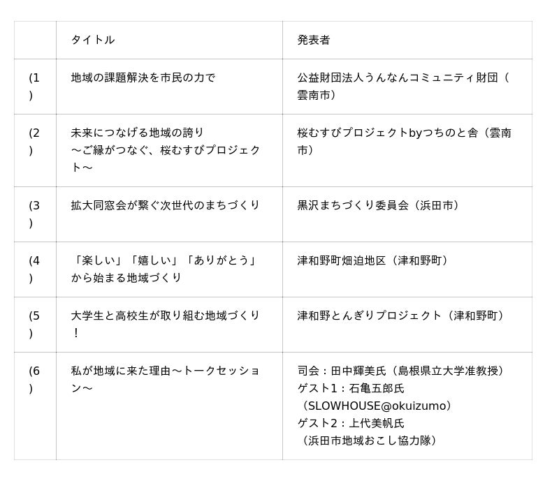 地域づくりの現場は今、「後継者不足」「活動の継続・継承」などの課題に直面しています。また、活動の中で合意形成や資金調達など、難しい場面も多くあります。しかし、そのような課題や困難を工夫して楽しみながら乗り越えている地域や団体が数多くあり、本イベントではそんな取り組みをする方々に登壇いただき、事例をご紹介いただきます。