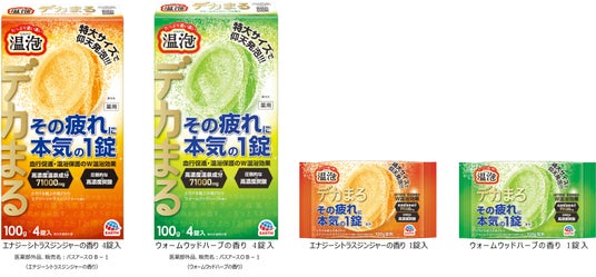 さらに、上記リポストにご参加いただいた方のなかから、抽選で『温泡 デカまる エナジーシトラスジンジャーの香り 4錠入』、『温泡 デカまる ウォームウッドハーブの香り 4錠入』をセットで20名様にプレゼントします。