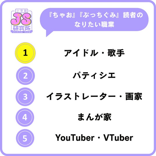★【なりたい職業】女子1位は「アイドル・歌手」、男子1位は「YouTuber」。“好き”を仕事にするクリエイター職が共通の人気