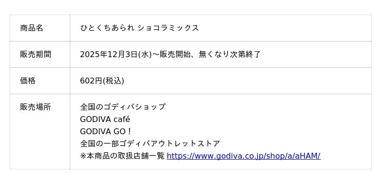 ミックス」を2025年12月3日(水)より、全国のゴディバショップ、GODIVA cafe、GODIVA GO!、および一部ゴディバ アウトレット店にて数量限定販売します。