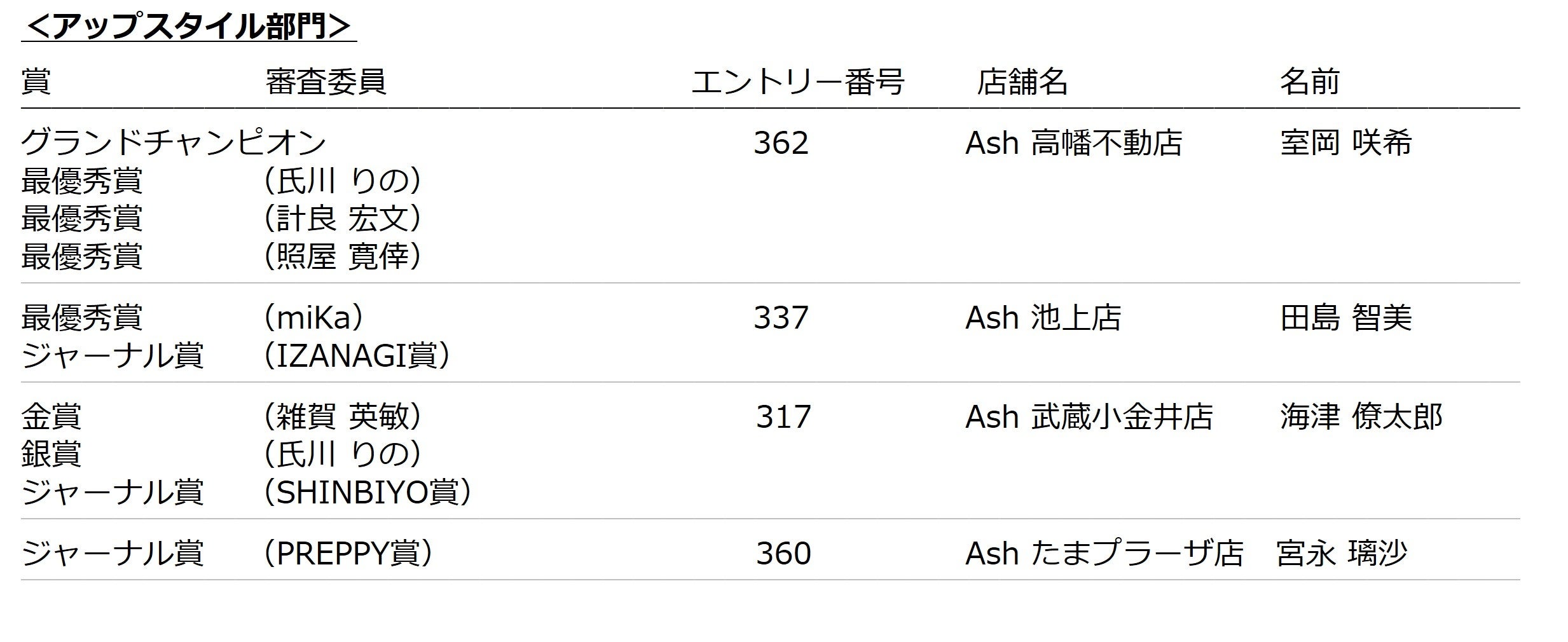 アップスタイル部門 グランドチャンピオン Ash 高幡不動店 室岡 咲希