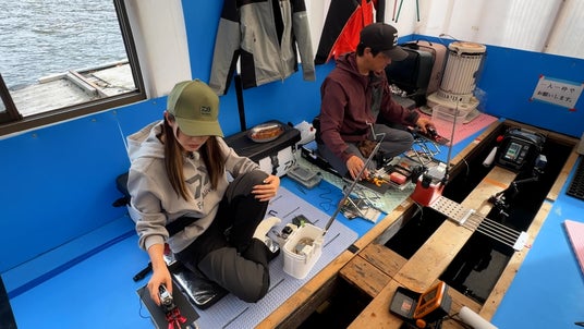 アングラーは桧原湖をホームグラウンドとするエキスパート・久保田稔と、ワカサギ釣りは2回目の挑戦となる竹内麻純。