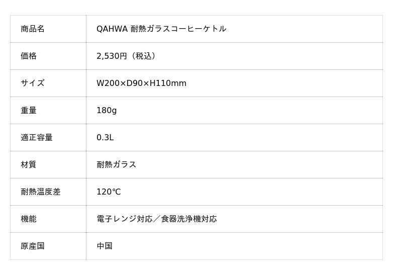 QAHWA 耐熱ガラスコーヒーケトルはそんな上質な時間を叶えるツールです。