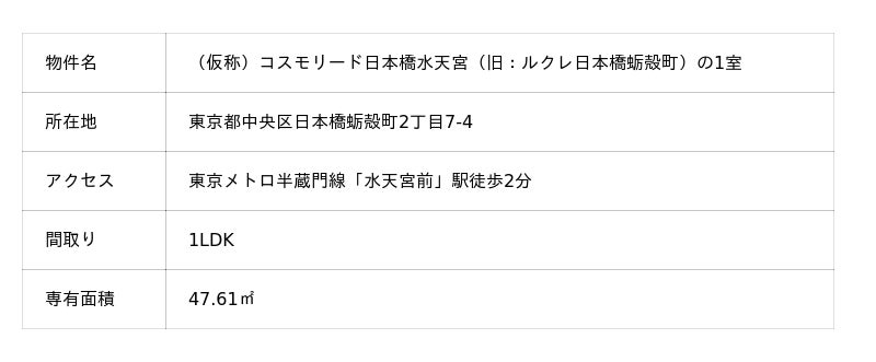(仮称)コスモリード日本橋水天宮(旧:ルクレ日本橋蛎殻町)の1室