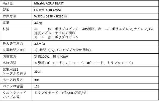 ミラブルアクアブラストは、国内家電量販店では全国のヤマダデンキで12月15日より先行販売を開始します。またヤマダデンキ池袋本店では、サイエンスコーナーを設け、万博で多くの方に入浴体験のご希望を頂きました「ミライ人間洗濯機」を実際体験可能な展示としするとともに、その他サイエンス製品も展示。より身近にミラブルテクノロジーを、全身で感じて頂けるコーナーとして展開いたします。●製品仕様