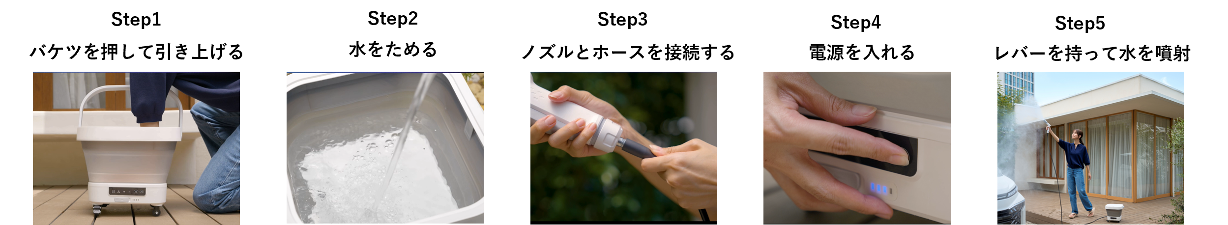 バケツ式であるため水道がなくても使用でき、バッテリー式でコードレスなので持ち運びがしやすくどこでも使用可能。キャスターもあり移動も簡単。軽量で操作が簡単な設計。