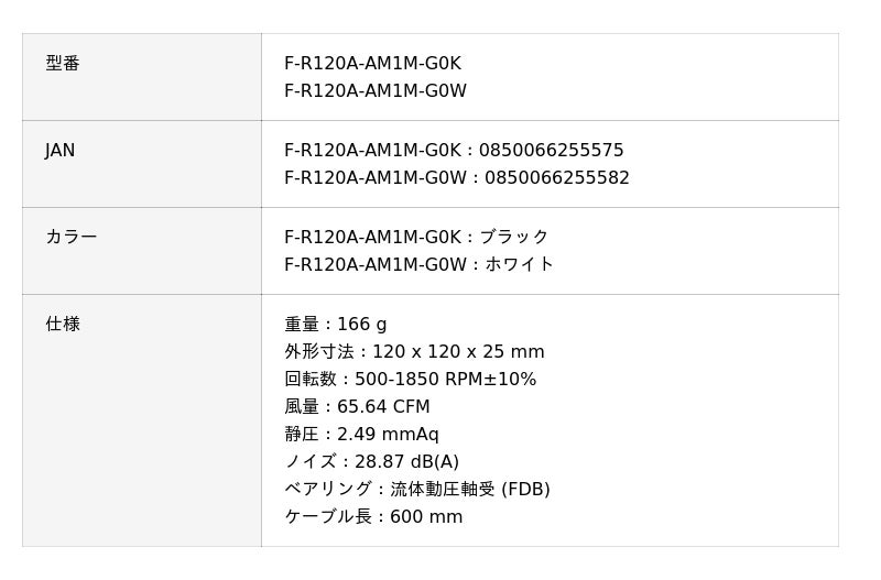 - 静音性能が高く、製品寿命の長い流体動圧軸受(FDB)ファンを採用