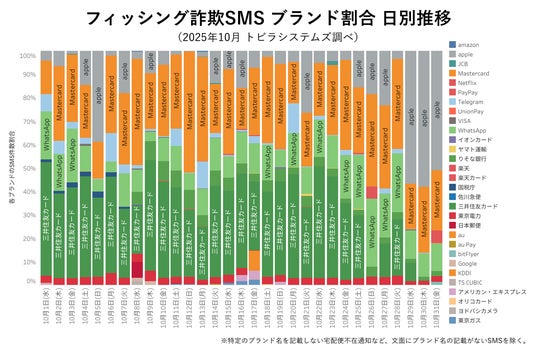 特殊詐欺やフィッシング詐欺の対策サービスを提供するトビラシステムズ株式会社(本社:愛知県名古屋市、代表取締役社長:明田 篤、証券コード:4441、以下「トビラシステムズ」)は、2025年10月に当社調査で確認された詐欺電話や詐欺SMSに関する独自調査レポートを公開します。(調査期間:2025年10月1日~10月31日)