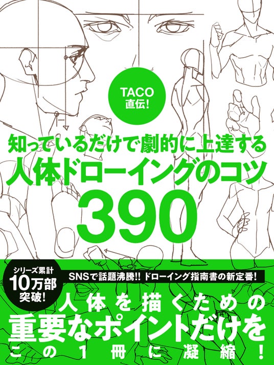 SNSで話題の技法書『TACO直伝!人体ドローイングのコツ390』の10万部突破を記念し、イラスト練習応援キャンペーンを定期開催いたします!