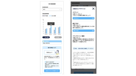 スコア改善のためのアドバイスや経年で実績を確認することもできるので継続的な運動実施 への効果を期待している。