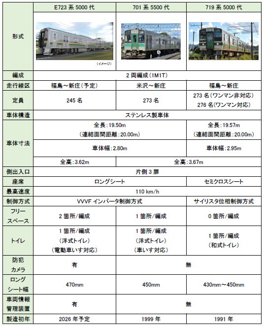 E723系5000代(新型)、701系5500代(現行)、719系5000代(現行)の概要 【別紙】